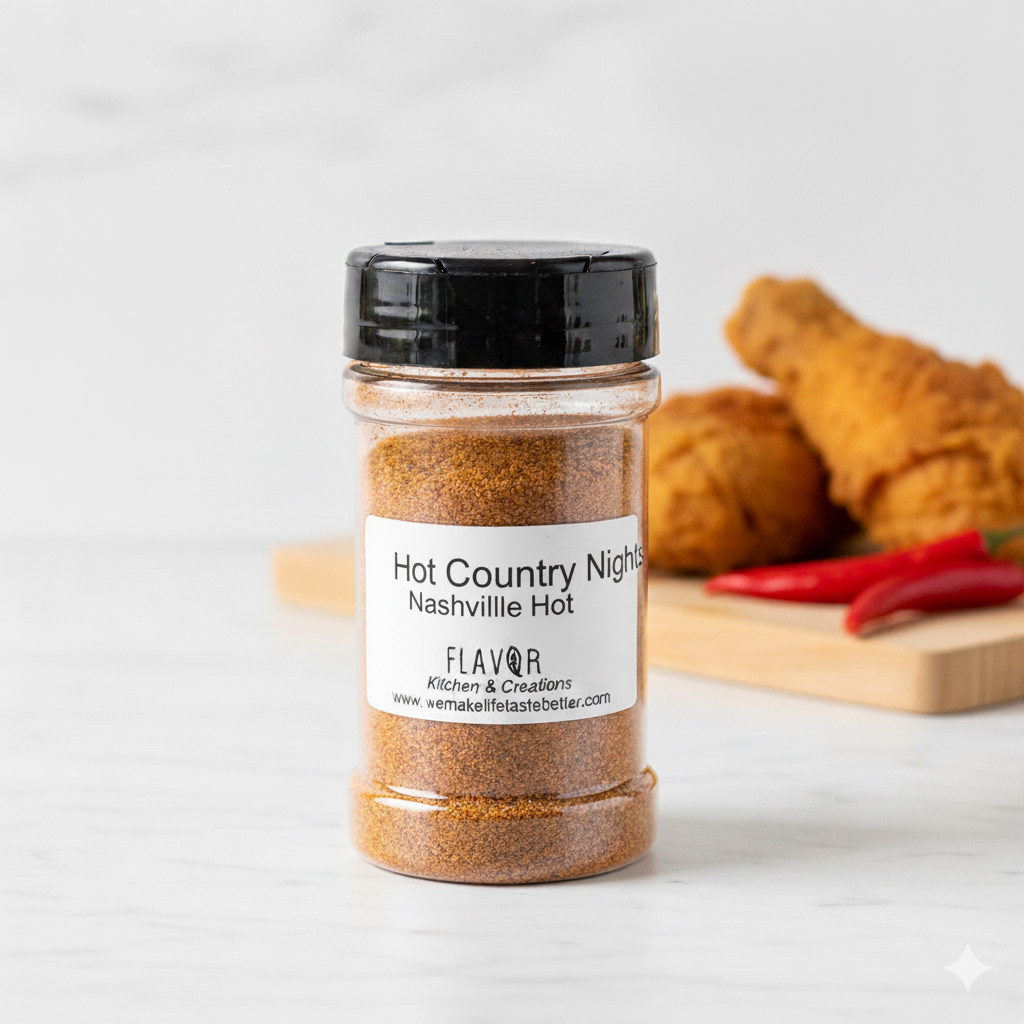 Turn up the heat with Hot Country Nights, a Nashville Hot Blend that packs a fiery punch with every sprinkle. Perfect for wings, chicken, or anything that needs a spicy kick, this blend brings bold, smoky heat with a touch of Southern charm. Add some sizzle to your meals and keep the flavor party going all night long!